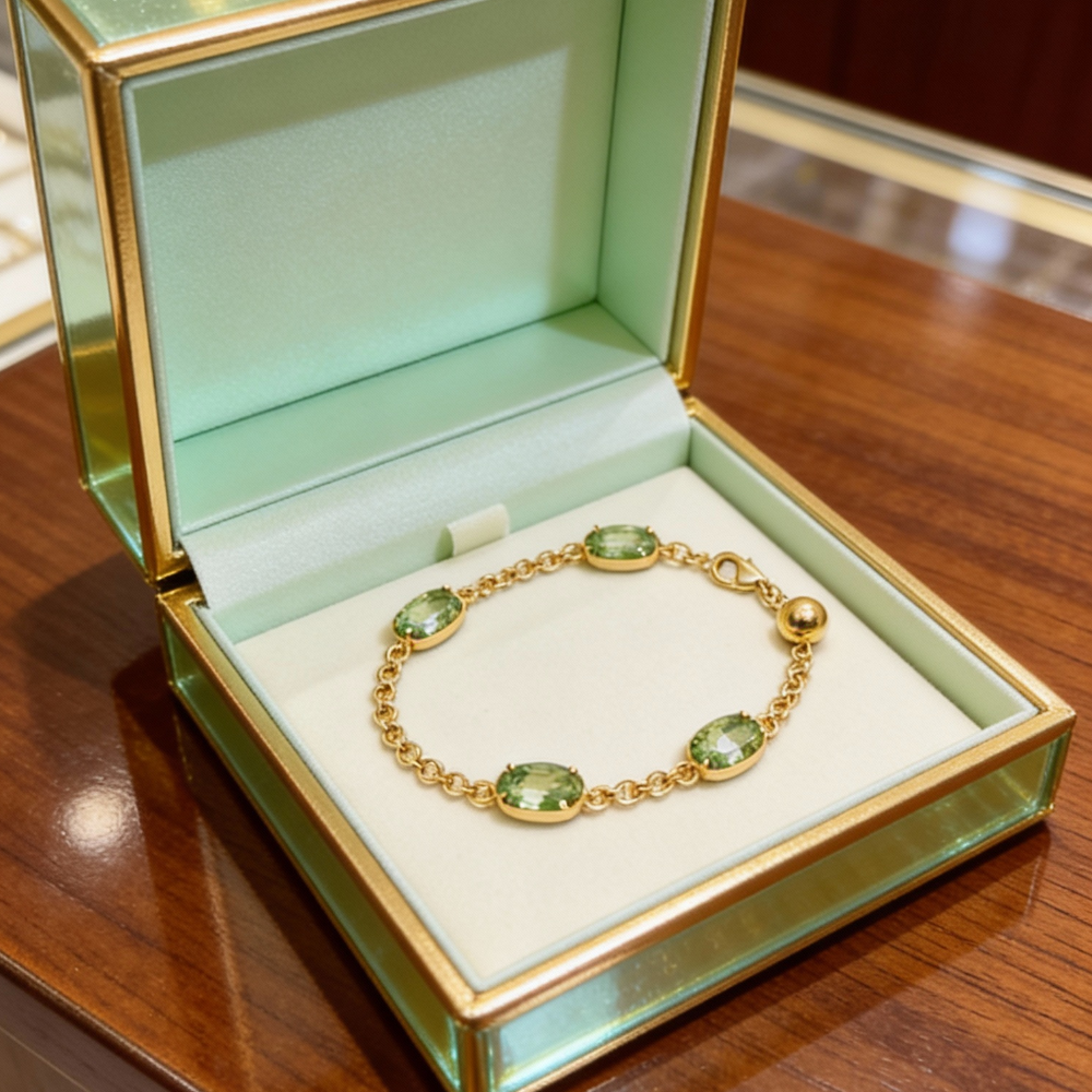 Reflexiile verzi sunt vizibile în lumină și dau brățării o strălucire fină.